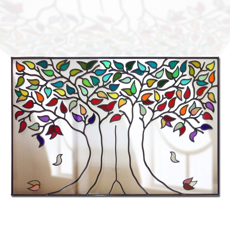 Landscape Tree Design Lead Overlay Stained Glass Mirror 91 X 71cm 36 X 28