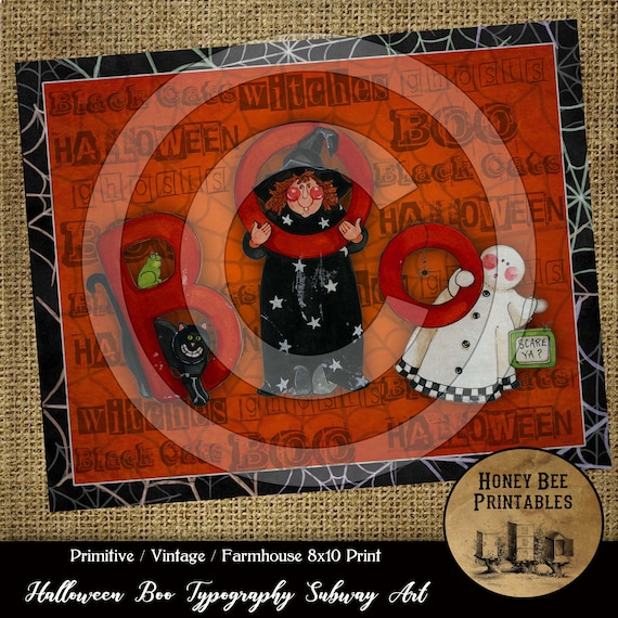 Primitive Vintage Printable Instant Download Jpeg 8x10 Card Making Frame It Pillows Labels Tags Halloween Boo Typography Subway Art